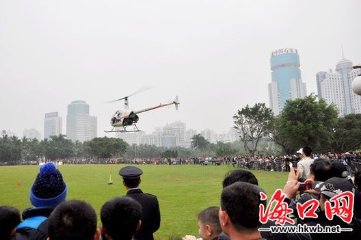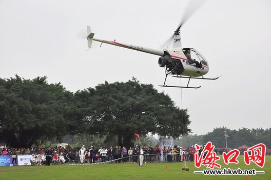 12月17日,2011中國首屆環(huán)海南島飛行拉力賽在?谂e行;顒(dòng)現場(chǎng)規?涨,扣人心弦,精彩紛呈。據悉,本次飛行拉力賽至本月30日止。圖為直升機定位“投籃”賽現場(chǎng)