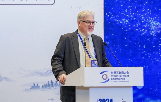 圖為美國信息產(chǎn)業(yè)機構北京辦事處總裁繆萬(wàn)德在“互聯(lián)網(wǎng)企業(yè)家論壇”上發(fā)言。(大會(huì )供圖)