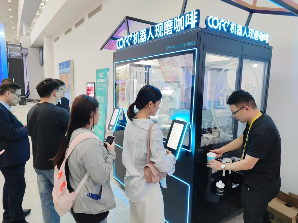 機器人現磨咖啡約50秒即可制作完成,成為現場(chǎng)的餐飲“打卡點(diǎn)”。 中國經(jīng)濟網(wǎng)記者梁木攝