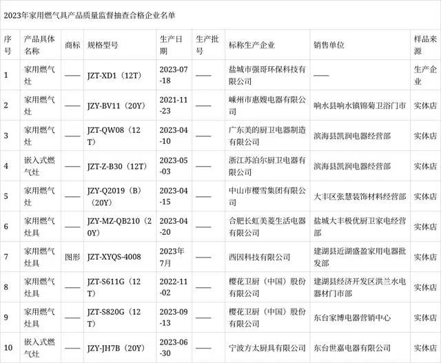 2023年度鹽城市市場(chǎng)監督管理局委托南京市產(chǎn)品質(zhì)量監督檢驗院(南京市質(zhì)量發(fā)展與先進(jìn)技術(shù)應用研究院)組織實(shí)施家用燃氣具產(chǎn)品市級監督抽查。本次抽查計劃10批次,抽到10批次,經(jīng)檢驗合格10批次。