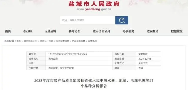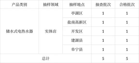 2023年度鹽城市市場(chǎng)監督管理局委托江蘇威諾檢測技術(shù)有限公司組織實(shí)施儲水式電熱水器產(chǎn)品市級監督抽查。本次抽查計劃5批次,抽到5批次,經(jīng)檢驗合格5批次。